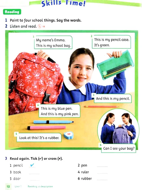 تقویت هر چهار مهارت زبان انگلیسی: این کتاب بر روی هر چهار مهارت زبانی کار کرده است.تمام کلمات و جملات کلیدی پرکاربرد برای تقویت مهارت صحبت کردن و نوشتن با موضوعاتی از قبیل مدرسه،خانواده و جامعه در این کتاب آموزش داده شده است.