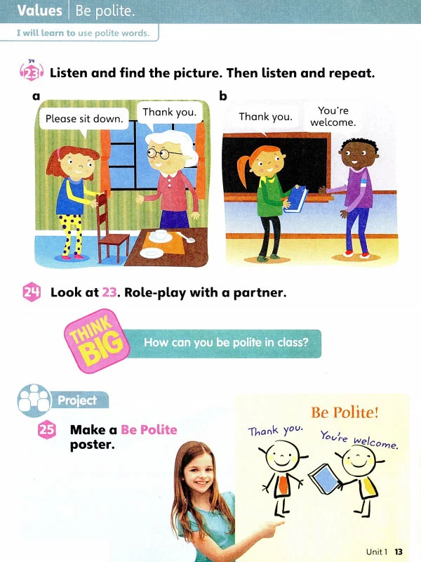 کتاب Big English 1 تمرکز خود را به پرورش کودکان برای مسئولیت پذیری و مشارکت در امور اجتماعی در حین یادگیری زبان گذارده است.