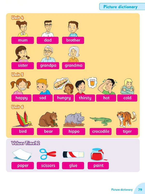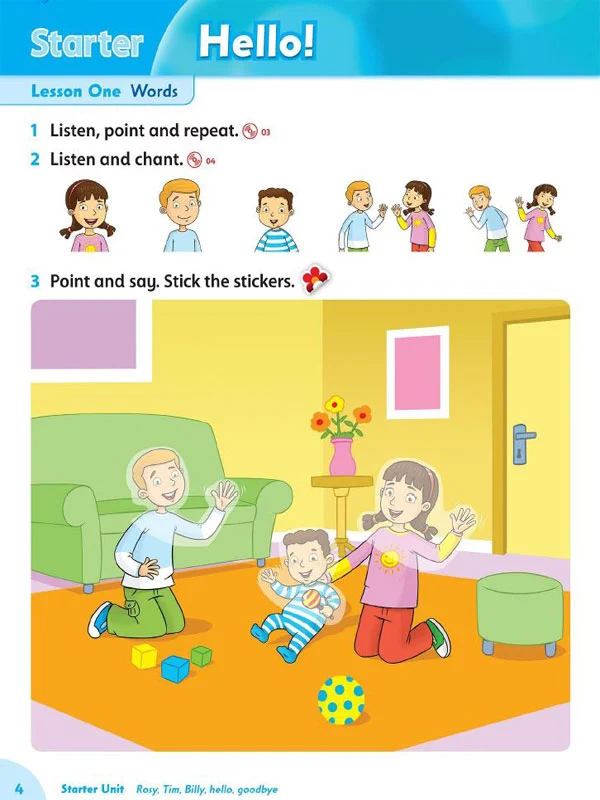 4. بخش هایی برای رنگ آمیزی، نقاشی و بازی های جذاب: کتاب Family and Friends Starter ویرایش جدید یکی از نمونه کتاب های آموزشی است که زبان انگلیسی را از طریق شناسایی رنگ ها و رنگ آمیزی و حروف الفبا، کلمات و جملات بسیار کوتاه به زبان آموزان خردسال آموزش می دهد.