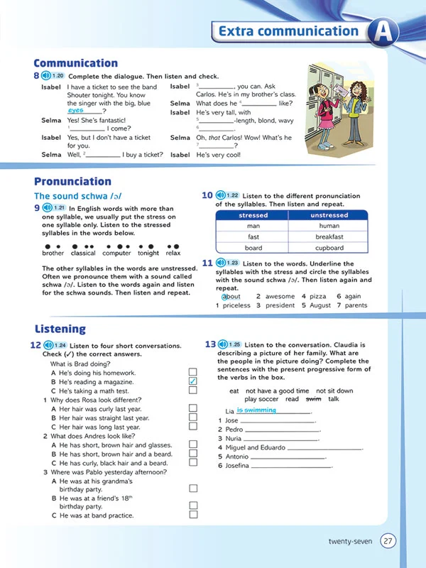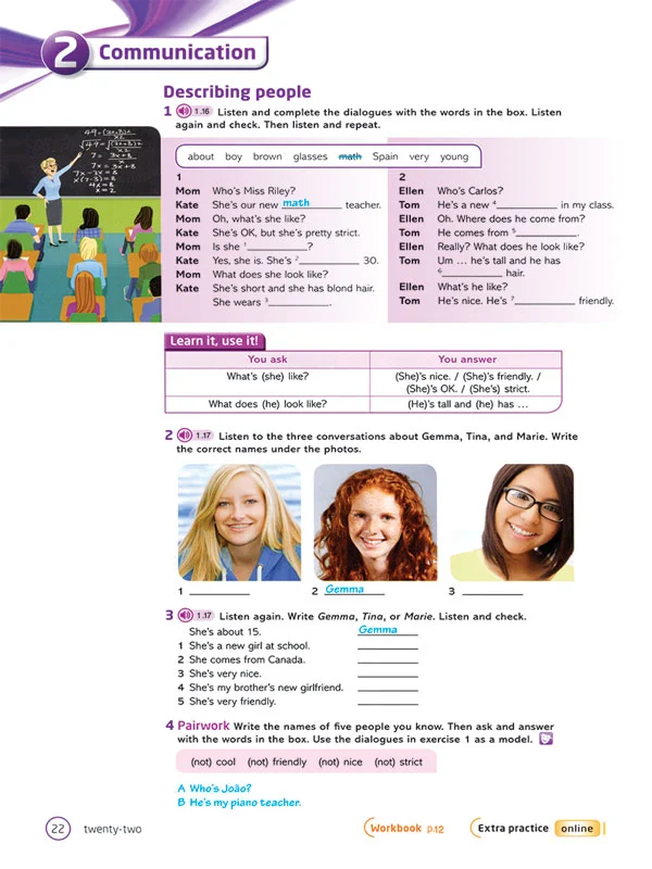 communication: در این بخش مهارت شنیداری، pronunciation و تمرین های تقویتی است.