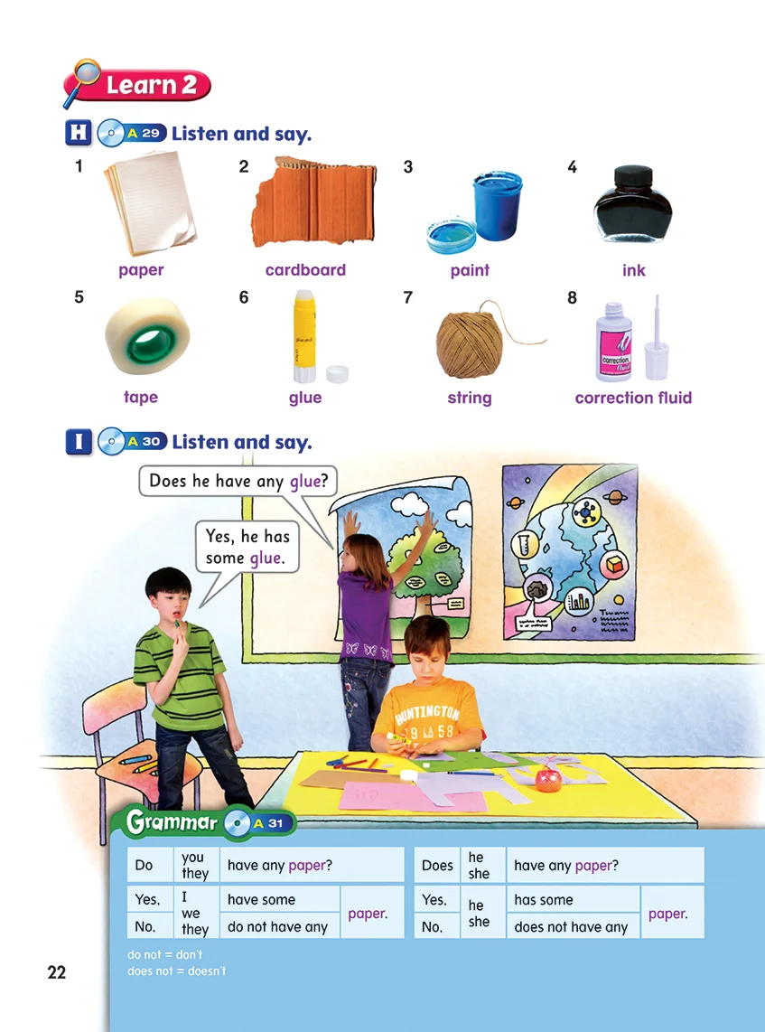 سی دی صوتی: یک بخش دو صفحه ای به نام Review به زبان آموزان اختصاص داده شده است تا آنها بتوانند مهارت های شنیداری را به طور کاملا کاربردی تقویت کنند و همراه تصاویر مهارت شنیداری را با نوشته ها متناسب کنند همچنین آنها می توانند با استفاده از این سی دی، تلفظ کلمات را به شکل صحیح بیاموزند.