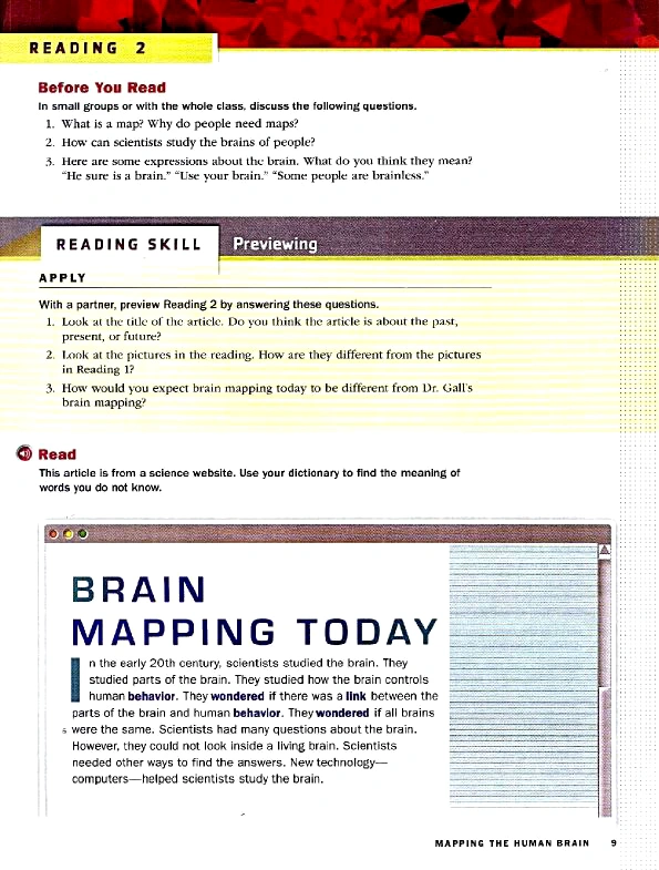 کتاب موردنظر دارای ۱۰ درس متنوع است که هر درس به Content Area, Reading Skill, Reading 1, Reading 2 و Vocabulary Activities تقسیم می گردد، همچنین داشتن تمرین های متنوع به زبان آموزان امکان درگیری با واژگانی را می دهد که بیشتر در روزمرگی مورد استفاده قرار می گیرند. از سوی دیگر زبان آموزان می توانند با این رویکرد نه تنها مهارت خواندن و درک و مطلب خود را به طور چشم گیری ارتقا دهند بلکه می توانند از طریق این لوح فشرده تلفظ های لغات را به صورت کاملا طبیعی فرا بگیرند و مهارت شنیداری خود را تقویت نمایند.