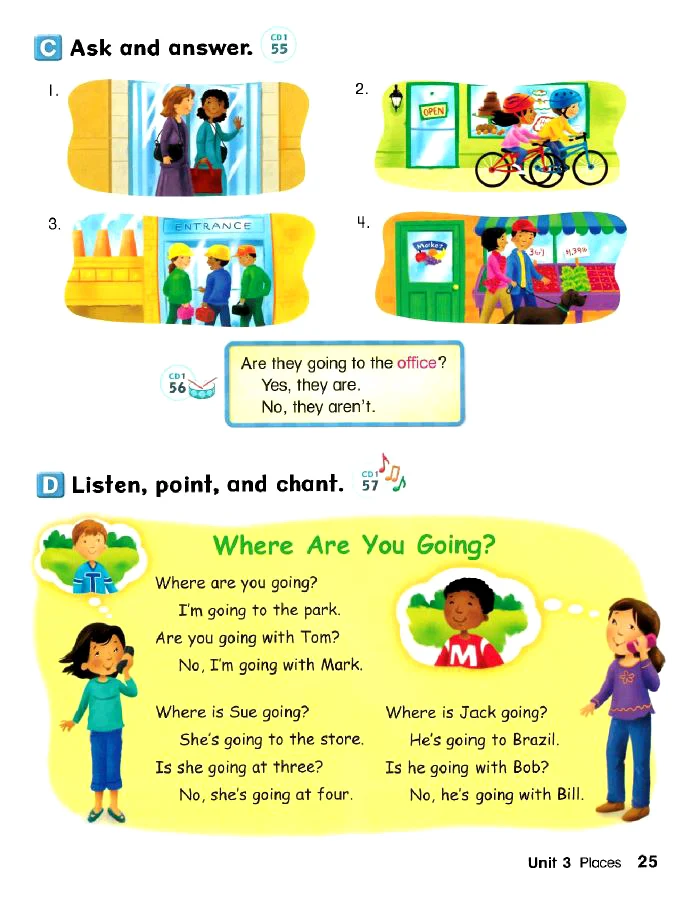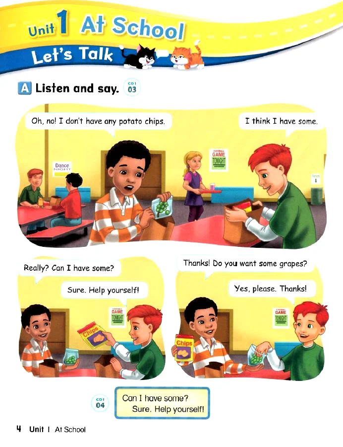 تمرکز بر مکالمه: کتاب لتس گو ۳ تمام درس ها را با مکالماتی شروع کرده است که خود نشانه ای بر تمرکز این کتاب بر آموزش مهارت صحبت کردن به کودکان است.