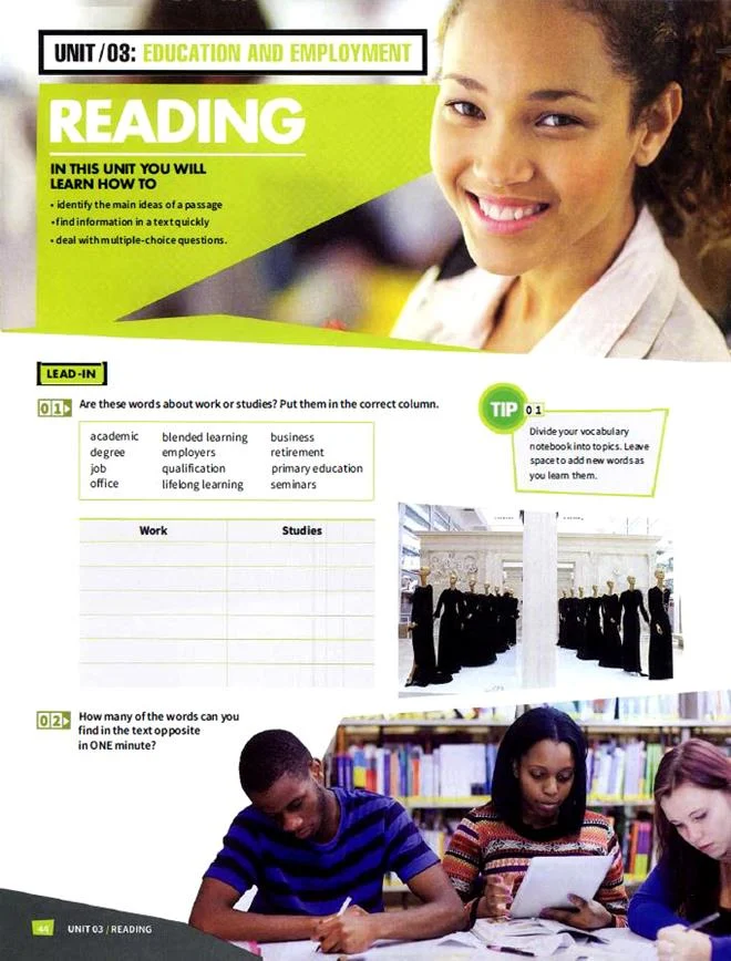 لغات متناسب با موصوع هر درس: شرکت کنندگان در آزمون IELTS باید بتوانند لغات مربوط به هر موضوع را در جای خود استفاده نمایند، از این رو در هر درس در قسمت ریدینگ و اسپیکینگ لیستی از واژگان ضروری به داوطلبان ارائه شده است که با یادگیری آن ها شما داوطلبان عزیز در آن موضوع تسلط کافی پیدا خواهید کرد.