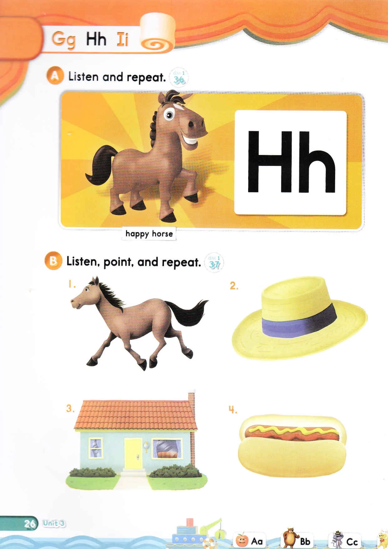 • در هر درس، تعداد 3 (بعضا 4) عدد از حروف الفبا به همراه مثال و تصویر آموزش داده شده است