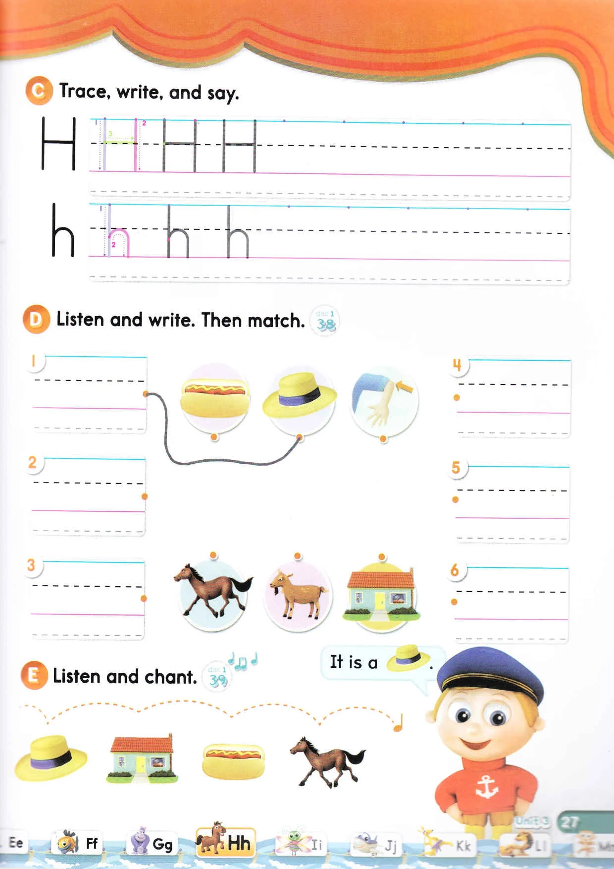 • دارای 7 برگه مانند فلش کارت در انتهای کتاب که تاکید آن استفاده از حروف الفبا در ساخت کلمات می باشد