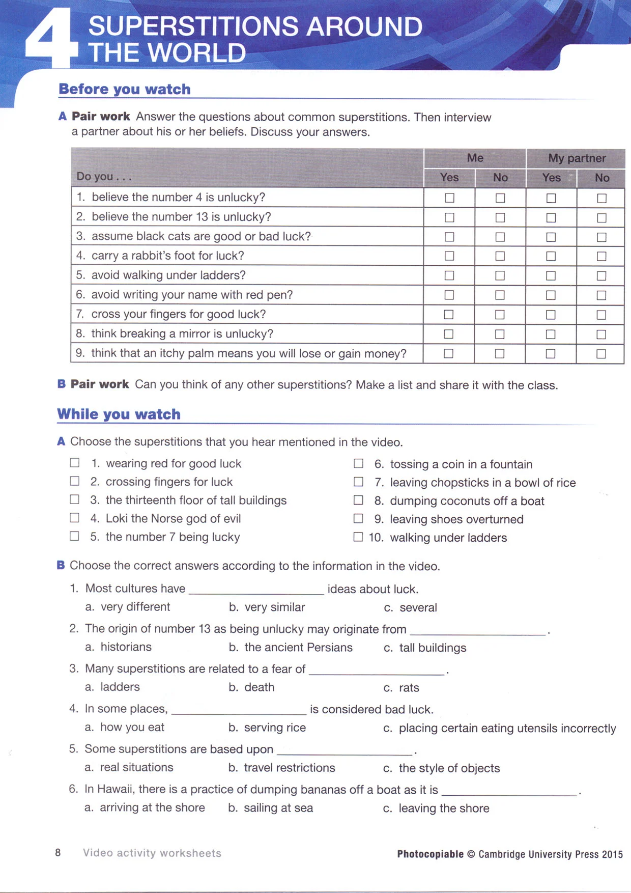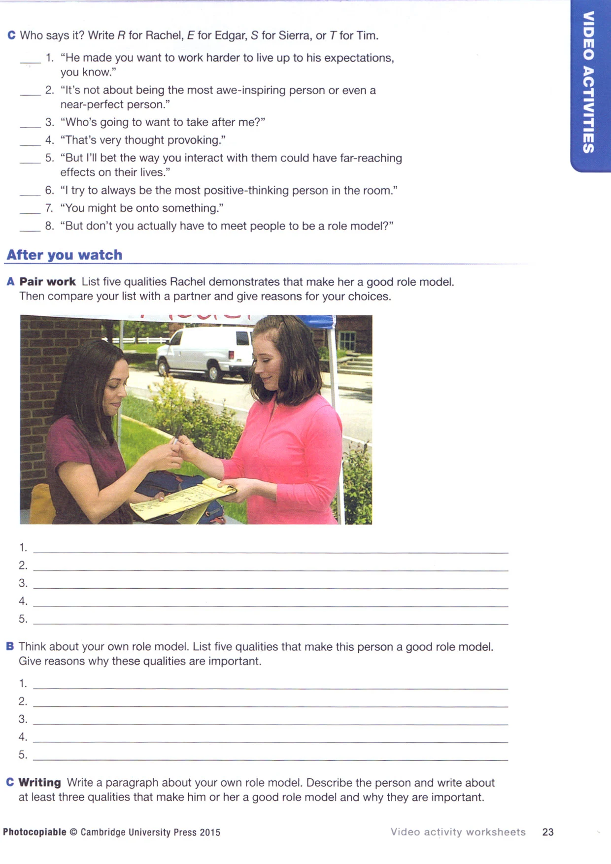 نوع کاغذ کتاب Passages Video Activity Worksheets 3rd