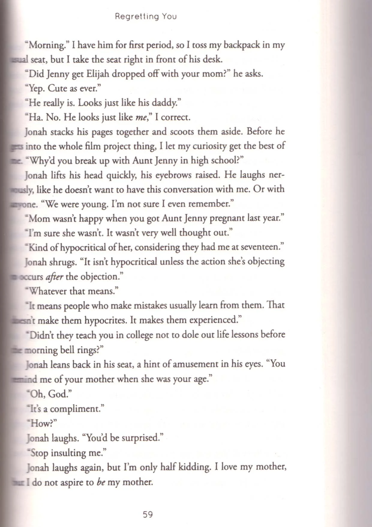 رمان Regretting You ماجرایی پر از عشق و ستیز بین مادر و دختریه که نمیتونن با هم کنار بیان و هر کدوم به یک سمت کشیده میشن و به یکی پناه میبرن، کتاب Regretting You ماجرایی پر از تجربه برای افرادیه که ازش بهره میبرن.