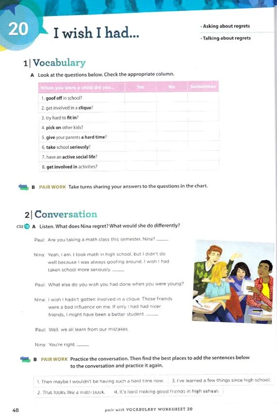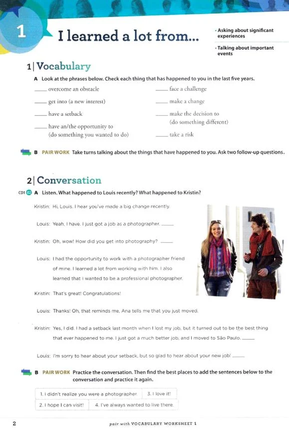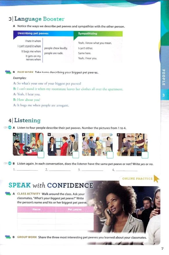 • تمرین های گوناگون: این کتاب برای آموزش مهارت اسپیکینگ و لیسنینگ از تمرین های مختلفی استفاده کرده است، استفاده از تمرین های گوناگون موجب تقویت هر چه سریعتر مهارت مکالمه می گردد.