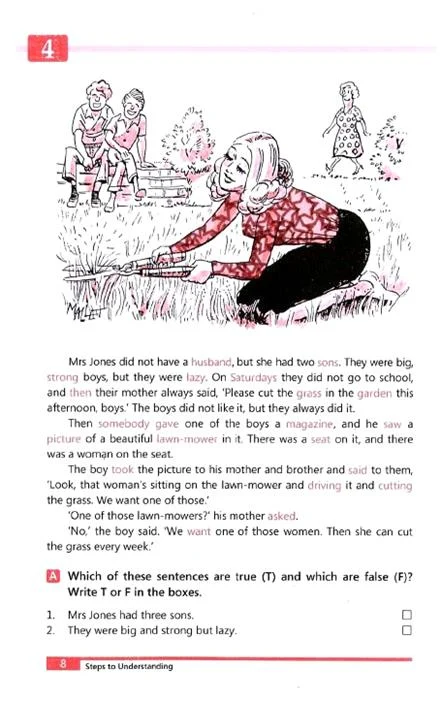 کتاب Steps to Understanding بر روی آموزش داستانوار زبان انگلیسی تمرکز دارد. در این کتاب اکثر داستانها به معرفی لغاتی میپردازند که بر اساس سطحبندی میتوانند برای خواننده بسیار مفید و کاربردی باشند. کتاب مورد نظر در کل یک کتاب بسیار کامل و چند جانبه است که به طور کلی بر روی تقویت خواندن و درک مطلب تمرکز دارد؛ از این رو کلمات مهم انگلیسی به راحتی به زبان آموزان آموزش داده میشوند و میتوانند موجب یادگیری سریع لغات در قالب متنهای سطح بندی شوند.