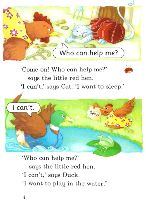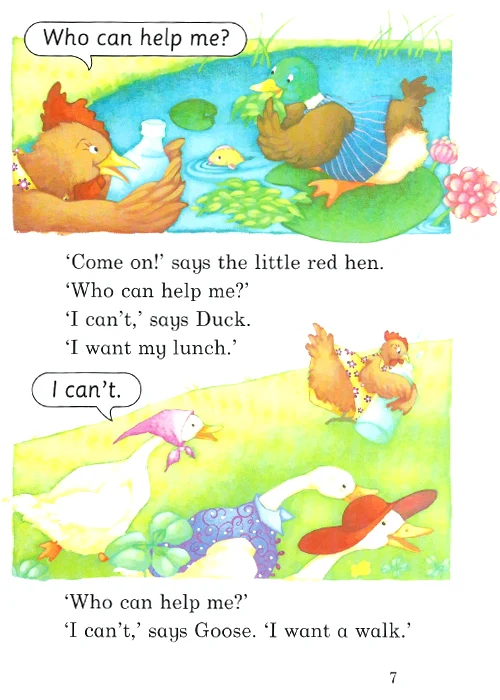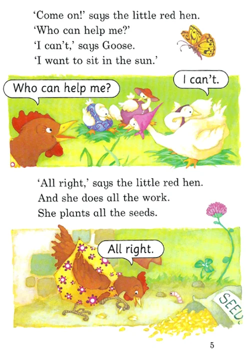 خلاصه داستان فوق العاده The Little Red Hen در مورد مرغی است که می خواهد نان درست کند و از حیوانات مزرعه برای پختن و درست کردن نان کمک میخواهد. در طول داستان کودکان جمله سازی، کلمات و گرامر را فرا میگیرند. زبان آموزان کودک و خردسال معمولا این کتاب را به عنوان کتابهای مکمل کتابهای family friends برای تقویت مهارتهای چهارگانه زبان انگلیسی معرفی شده است که یکی از کتابهای مجموعه داستان Family And Friends است.