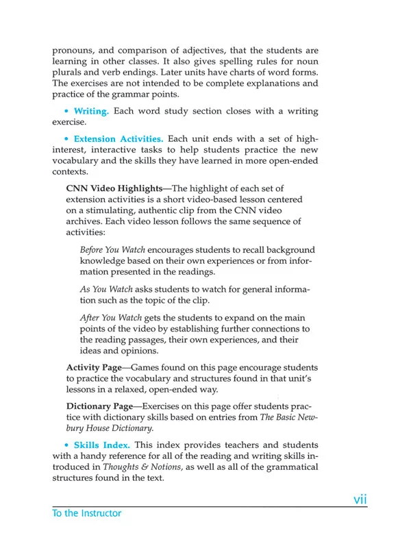 کتاب Thoughts and Notions 2 2nd سطح دوم سری Reading and Vocabulary Development می باشد که با ارائه متون های مختلف و جذاب سعی در آموزش سریع ریدینگ را دارد. کتاب اندیشه و تصورات 2 ویرایش دوم می تواند دیدگاه شما را نسبت به هر موضوعی تغییر دهد و شما را به یادگیری و پیشروی درس به درس و یادگیری کلمات و عبارات مرتبط در قالب ساختارهای جمله و پاراگراف نویسی راغب نماید، کتاب فوق سطح دوم مجموعه ۴ جلدی Reading and Vocabulary Development می باشد که با ساختاری منظم به آموزش تکنیک های مهارت ریدینگ می پردازد و دایره لغات شما را به صورت چشم گیری افزایش می دهد. در انتها لازم به ذکر است که این مجموعه در انتشارات Thomson Heinle چاپ و منتشر شده است، همچنین می توان به موضوعات این کتاب در موارد زیر اشاره کرد: