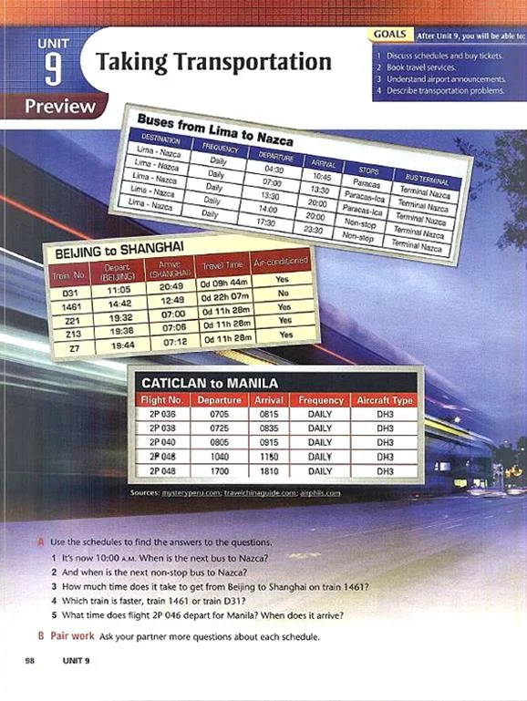 - درس ۴ درباره حمل و نقل، برنامه ریزی، زمان آینده و مشکلات پرواز