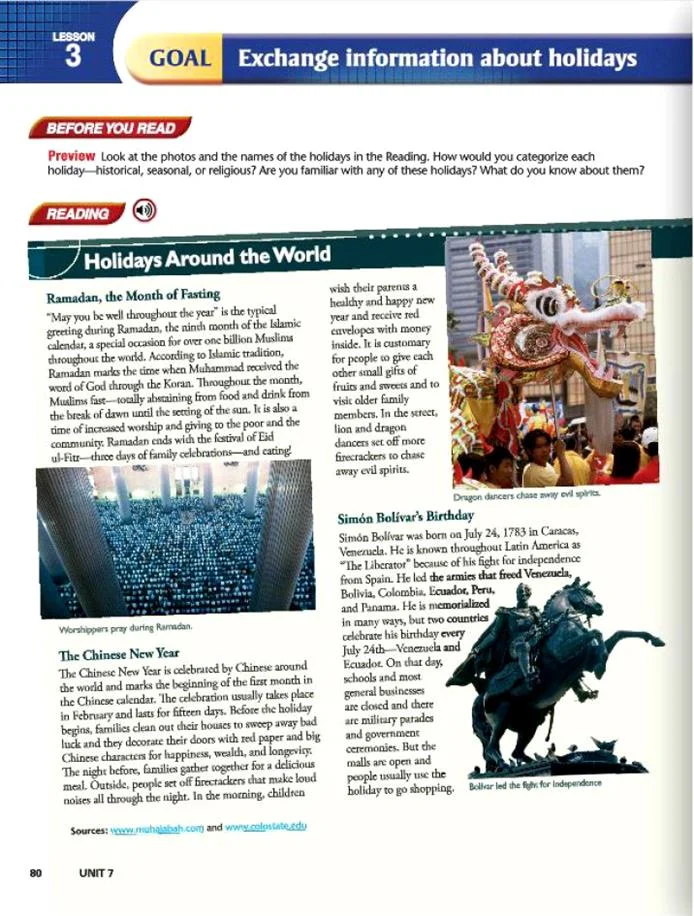 - درس ۲ درباره تعطیلات و رسوم و عروسی