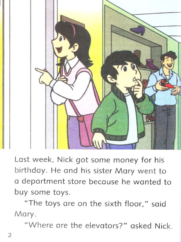 کتاب Up and Down یکی از داستان های هیجان انگیز و جذاب از مجموعه ی Dolphin Readers است که مربوط به یک پسر بچه ای است که همراه خواهرش سوار آسانسور شده اند و برای خرید اسباب بازی باید به طبقه ی ششم بروند.