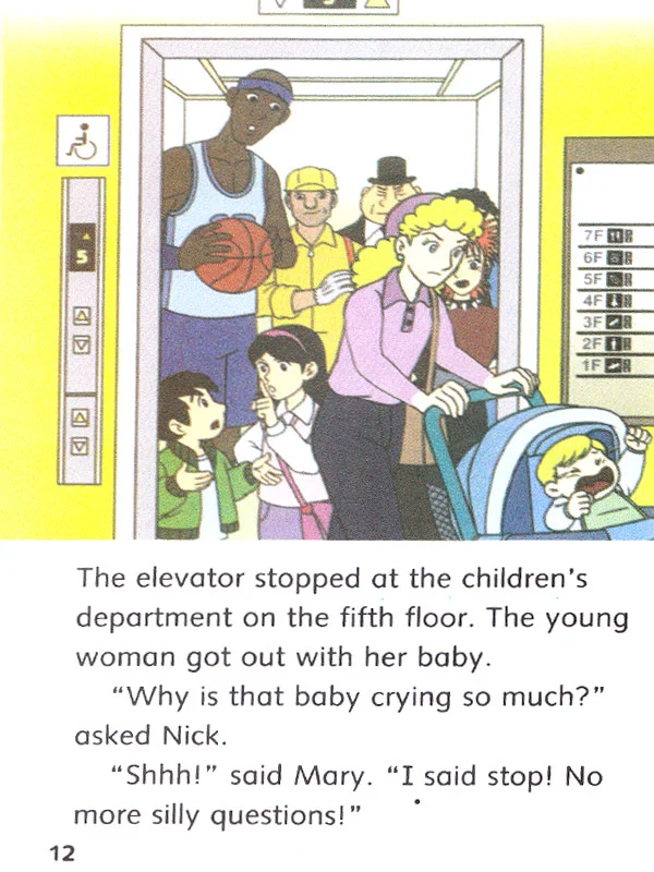 کتاب Up and Down یکی از داستان های هیجان انگیز و جذاب از مجموعه ی Dolphin Readers است که مربوط به یک پسر بچه ای است که همراه خواهرش سوار آسانسور شده اند و برای خرید اسباب بازی باید به طبقه ی ششم بروند. در هر طبقه با افرادی مواجه میشوند که متضاد با خصوصیات طبقه میباشد. اگر فرزندنتان میخواهد لغات مربوط به طبقات را فراگیرد، این کتاب بهترین گزینه برای آموزش است. از اینرو میتوانید به خرید کتاب Up and Down اقدام نمایید..